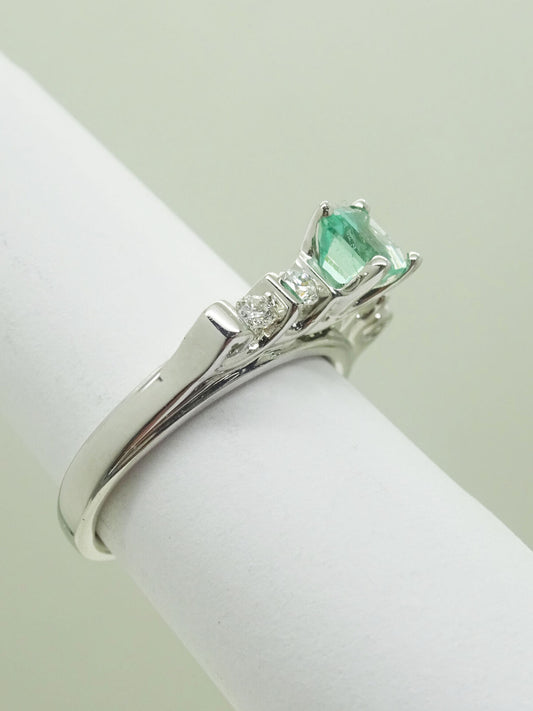 0.66ct tw Square Natural Emerald & Diamond Ring 18k White Gold Size 4.75