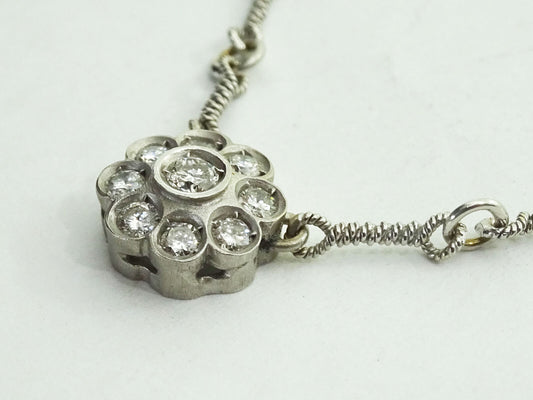 0.5ct tw Diamond Flower Halo Pendant Chain Necklace 18k White Gold 16"