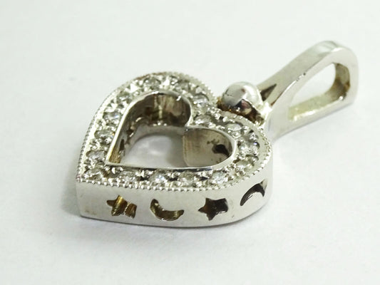 0.5ct tw Diamond Open Heart Star Moon Filigree Pendant 18k White Gold