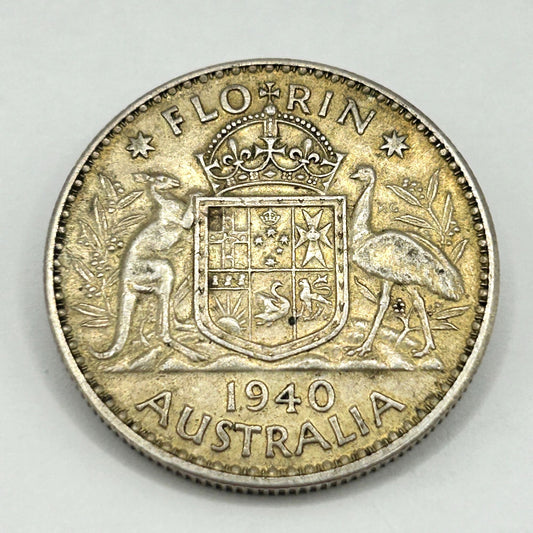Australia 1940, Florin, Silver - KGVI, Commonwealth, Melbourne Kangaroo KEY 1