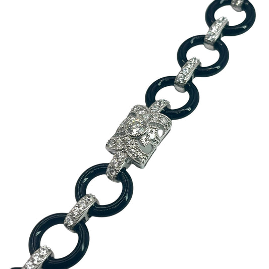 Art Deco 925 Sterling Silver Cubic Zirconia Link Bracelet Black Silver Statement