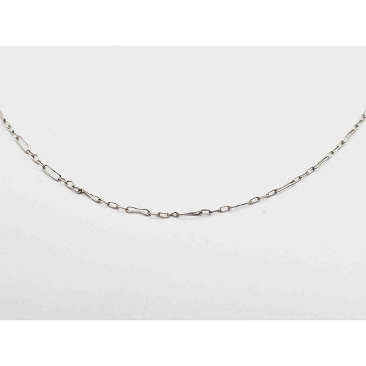 Antique Thin Chain Link Necklace 14k White Gold 18"
