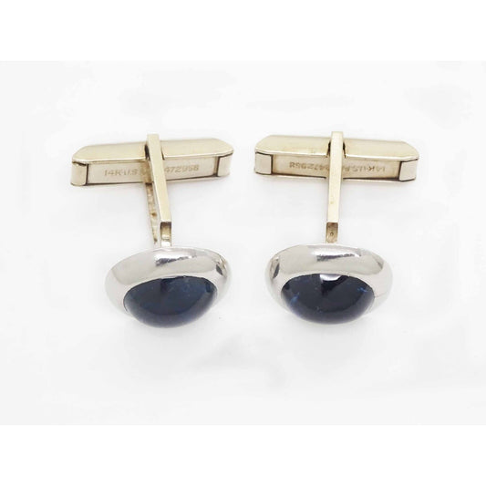 Art Deco 6.4ctw Natural Sapphire Cabochon Platinum & 14k White Gold Cuff Links