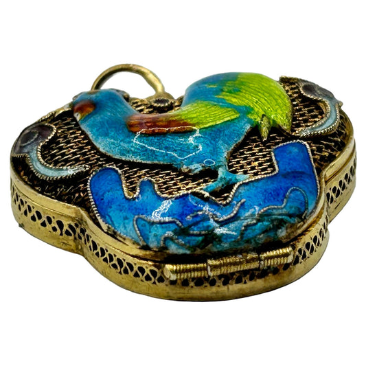 Antique Silver/Gold Vermeil Enamel Rooster Locket Pendant/Charm