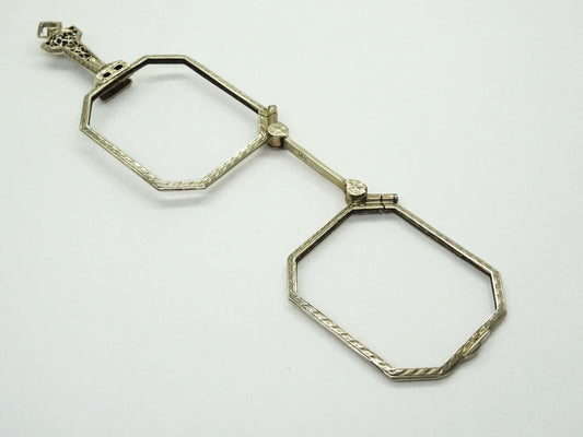 Antique Victorian Lorgnette Folding Opera Glasses 14k White Gold