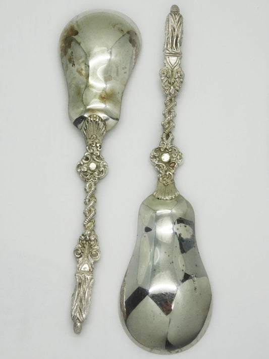 Antique William Hutton Apostles Scalloped Sterling Silver Serving Spoons