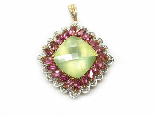 Chalcedony Pendant & Earrings 14k Gold w/Pink Tourmaline, White Topaz, Diamond
