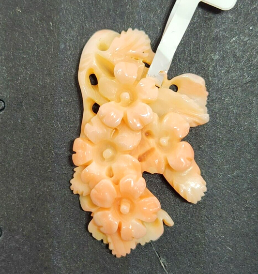 Carved Floral Angel Skin Coral Charm 1.25" Long