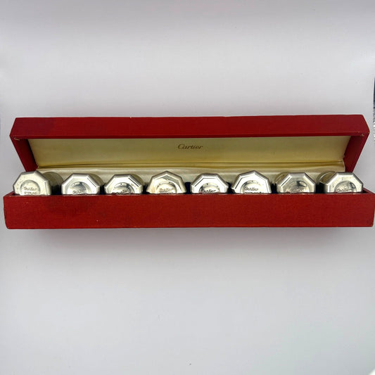 Cartier Set of 8 Sterling Silver Salt and Pepper Shakers in Original Red Box