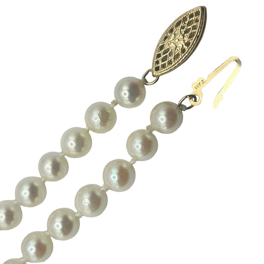 Cultured Pearl Round Akoya 5-5 1/2 mm 20" Necklace, 14K Hook Clasp - 73 Pearls