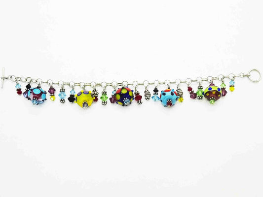 Colorful Murano Glass & Crystal Bead Charm Toggle Charm Bracelet Sterling Silver