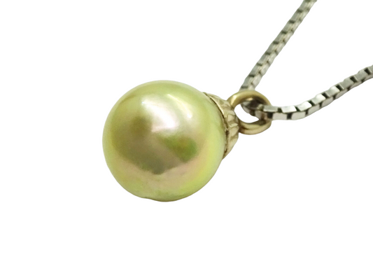 Cultured Pearl Bead Drop Pendant Box Chain Necklace 20" 14k White Gold