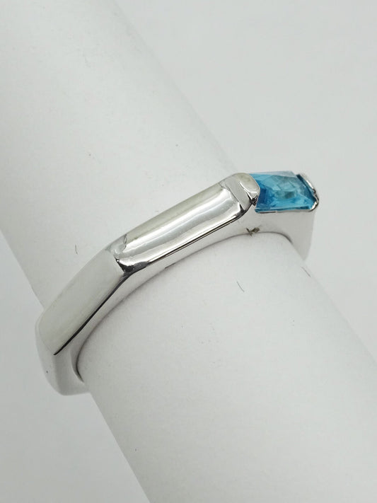 Faux Blue Topaz Rhodium-Plated Octagon Band Ring Size 7