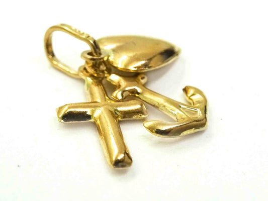 Faith Hope Love Cross Anchor Heart Charm Pendant 14k Gold