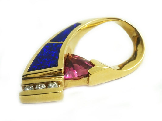 Fiery Violet Blue Opal Pink Tourmaline Diamond Slide Pendant 14k Gold