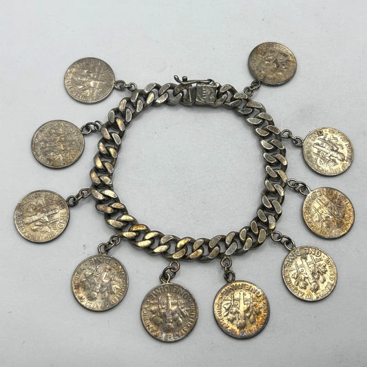 Vintage Silver Roosevelt Dime Sterling Silver Charm Bracelet