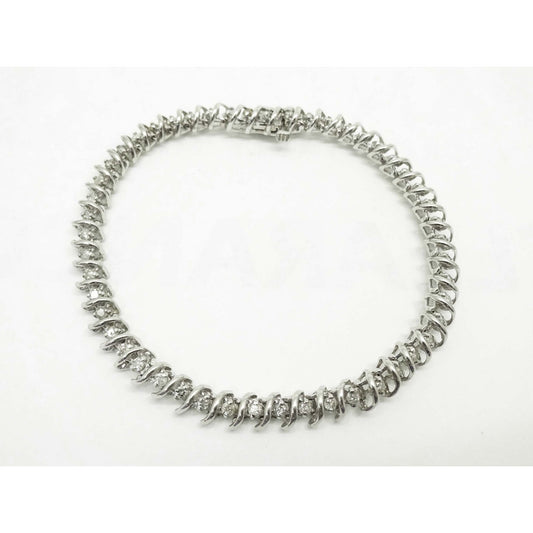 1.47 ctw Natural Diamond 5mm Wide S-Link Tennis Bracelet 7" Long 14k White Gold