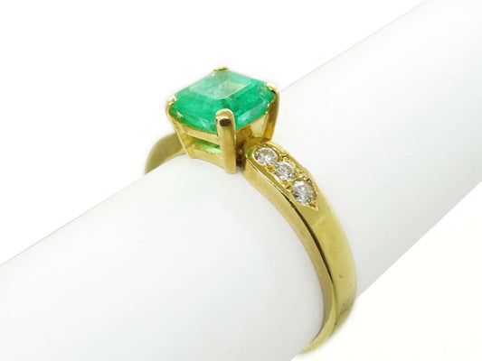 1.46 ctw Natural Emerald & Diamond Ring 18k Gold Size 7.75