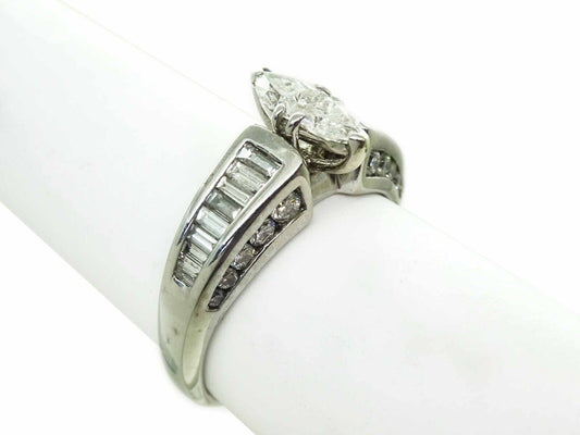 1.50ct tw Natural Diamond Engagement Ring 14k White Gold Past-Present-Future sz5