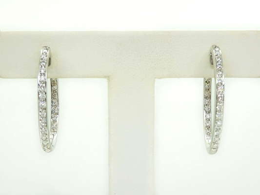 1.50ct tw Earth Mined Diamond Inside Out Oval Hoop Earrings 14k White Gold