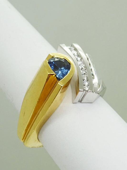1.27ct tw Natural Sapphire & Earth Mined Diamond Ring 14k 2-Tone Gold Size 6.5