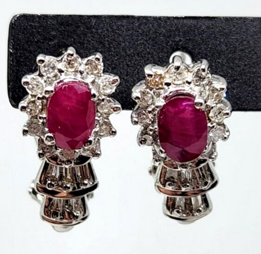 1.56ct tw Natural Ruby & Diamond 14k White Gold Earrings