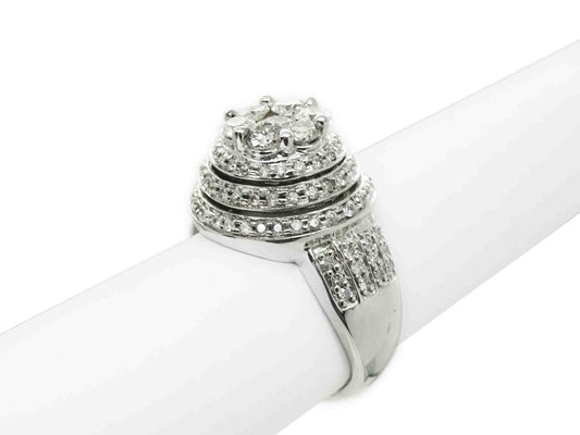 1.57ct tw Natural Diamond Cluster Step Dome Ring 14k White Gold Size 7.5