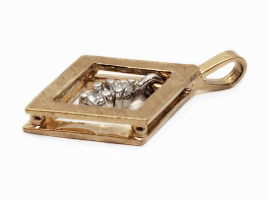 0.05 ctw Diamond Dangle Diamond-Shaped Openwork Pendant 14k Two-Tone Gold