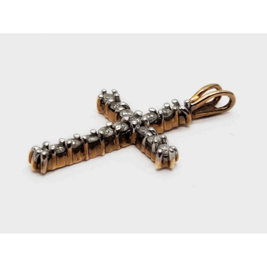 0.16 ctw Natural Diamond Cross Charm Pendant 10k Gold