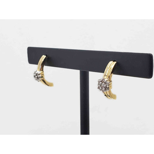 0.14ctw Natural Diamond Mini Cluster Half Hoop Style Drop Earrings 14k Gold