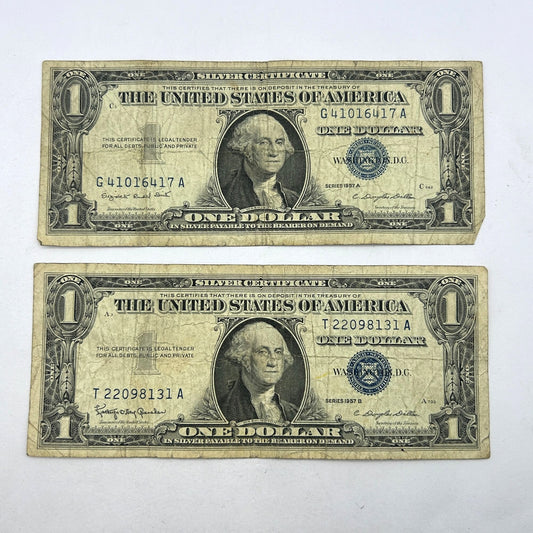 LOT OF 2 1934-A & 1934-B Blue Seal FRN Banknote Silver Certificate - Circulated