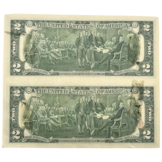 1976 $2 Uncut Sheet Of 2 Star Note Banknotes - Uncirculated