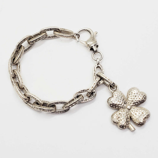 Lucky Four Leaf Clover Charm Pendant Bracelet Sterling Silver