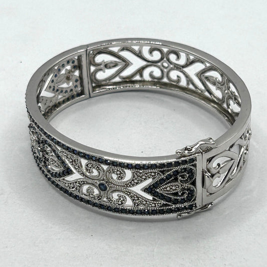 Sapphire & Diamond Hinged Bangle Bracelet 925 Sterling Silver - 7.75"