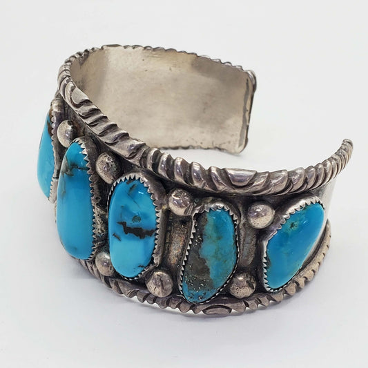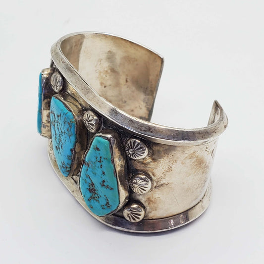 Southwestern Turquoise Sterling Silver Cuff Bracelet 76.5 Grams