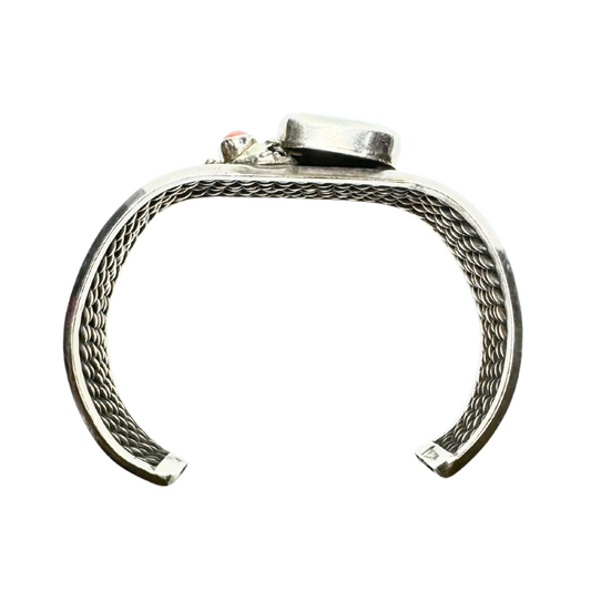Julia Cadman Vintage Navajo Turquoise Coral Flower Roped SS Cuff Bracelet