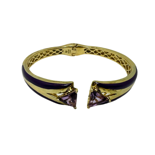 SS Gold Vermeil Amethyst Inlay Hinged Cuff Bracelet
