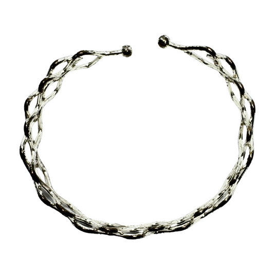 Silver Tone Interwoven Braided Wide Cuff Bracelet