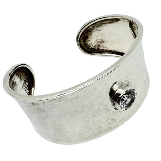 CII Mexico Sterling Silver Convex Wide Cuff Bracelet with Center Crystal
