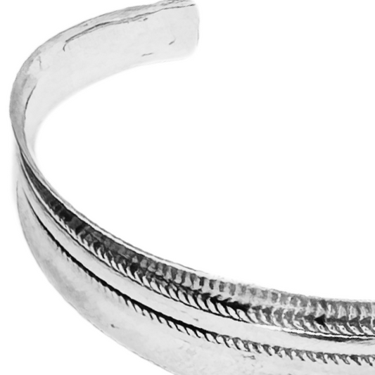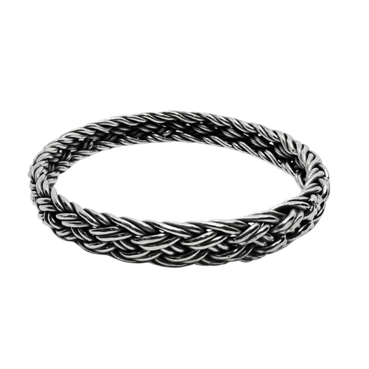 SS Vintage Dark Tone Basket Weave Cuff Bangle