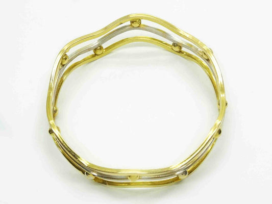 Tri-Band Wave Hollow Openwork Bangle Bracelet Two-Tone 14k Gold 15.7 Grams