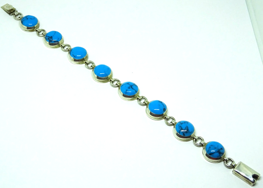 Mexico Round Turquoise Cabochon Sterling Silver Link Bracelet