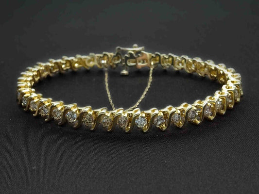 4.26ct tw Natural Diamond 6mm S-Link Tennis Bracelet 14k Gold