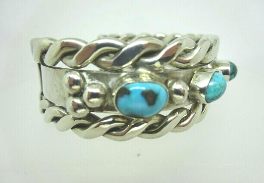 Navajo Native American Turquoise Sterling Silver Braid Cuff Bracelet