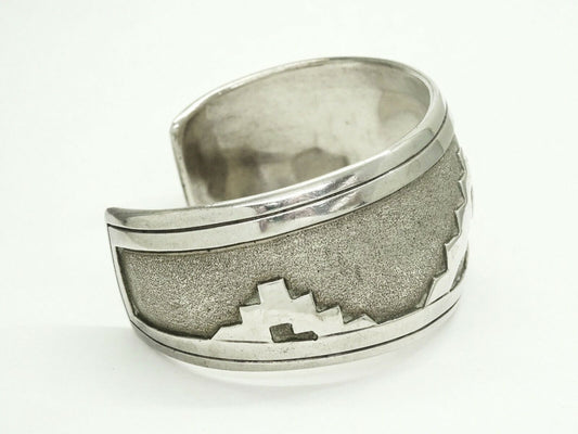 Southwestern Geometric Modernist Wide Cuff Bracelet Sterling Silver