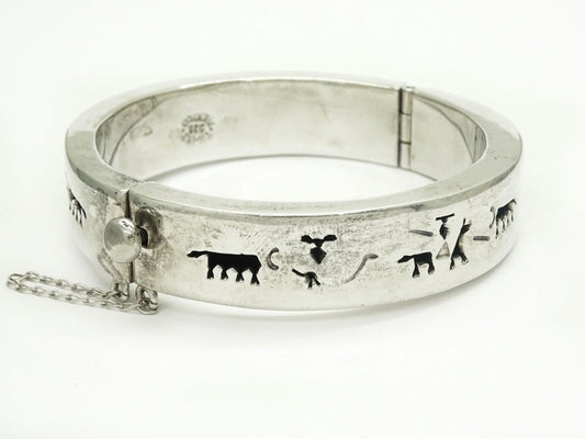 Mexico TM-143 Storyteller Hinged Bangle Bracelet Sterling Silver