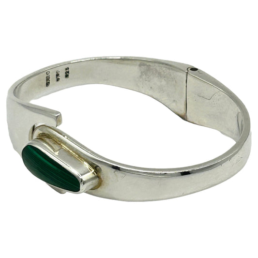 Taxco 925 Sterling Silver & Malachite Hinged Bangle Bracelet