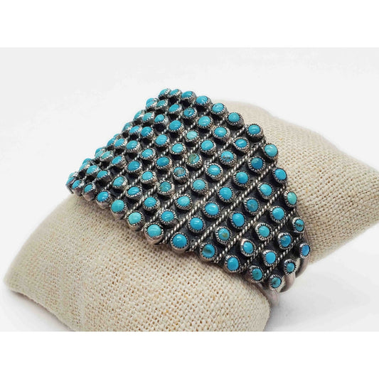 Vintage J.M. Begay Navajo Native American Petit Point Turquoise Cuff Sterling
