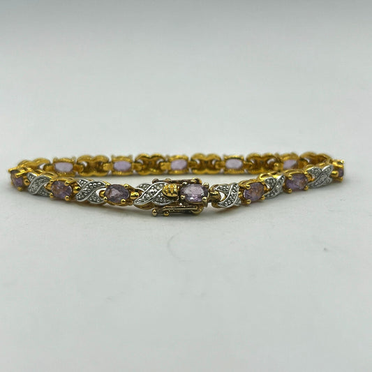 Amethyst Gold on Sterling Vermeil Gemstones 7" Tennis Bracelet - 23 Stones