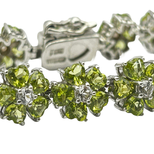Peridot/CZ Gemstone 925 Sterling Silver 7" Tennis Bracelet - 96 Stones (16 CZ)